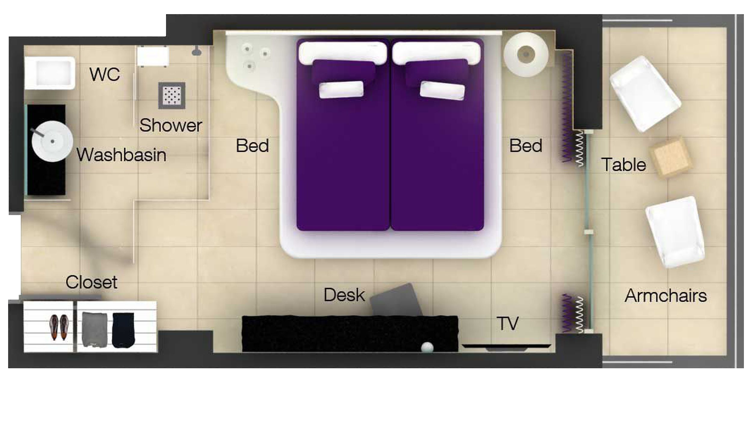 50,23,Zwei Einzelbetten (je 100 cm) wandelbar in ein Doppelbett (auf Anfrage).