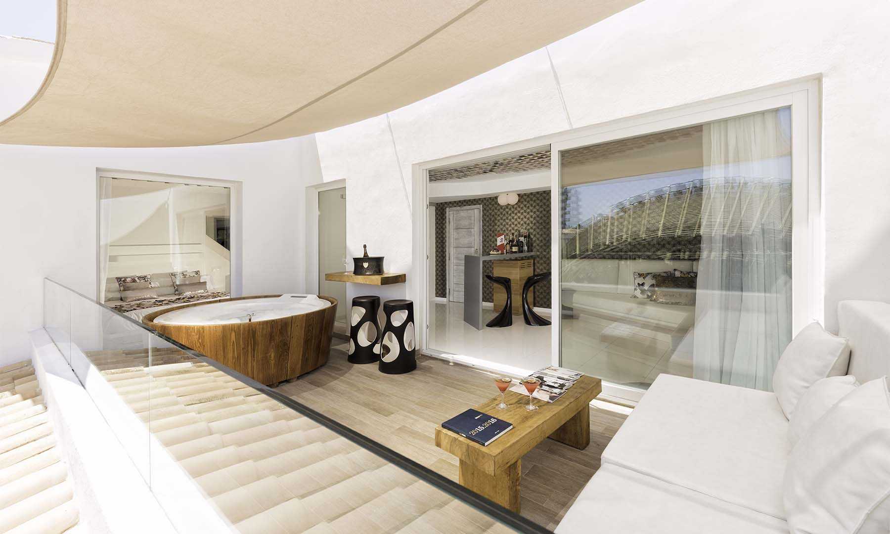 Die Suite, die den Unterschied ausmacht. Die letzte Reihe, die in Wirklichkeit die erste ist. Die einzige. Backstage-Suite. Keine Ablenkungen. Mit vollem Beat. Und mit einem Whirlpool auf einer der beiden Terrassen. Purer Club. Schließe Deine Augen. Der Blick erübrigt sich. Fühle. Tanze. Jage. Alles wie im Flow. Du bist nicht in der Nähe des Herzens von Ushuaïa. Du bist mittendrin in Ushuaïa. Der Logenplatz für Liebhaber der geheimen Türen. Die Besten. Diejenigen, die Geheimnisse öffnen. Erlebe die Party von der anderen Seite. Springe in den Backstage-Bereich. Reserviere die Backstage-Suite. Die ganz spezielle Suite für Clubber mit Fantasie.