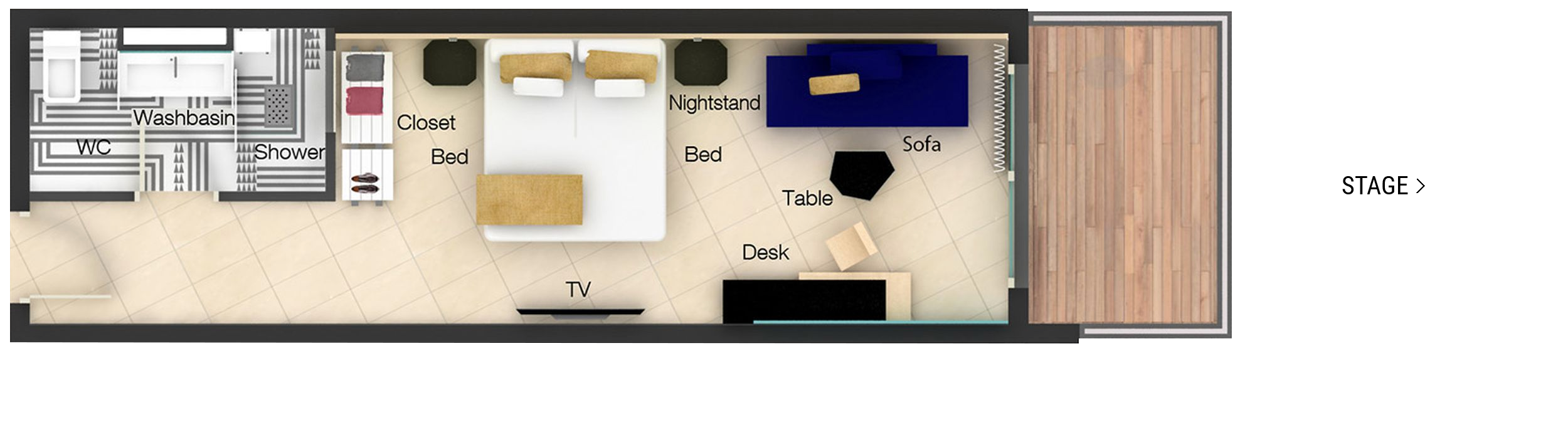 Not knowing the time and enjoying the feeling. Instantly sharing with your friends (and almost friends) your most enticing smile. Going to the terrace with drink in hand to enjoy the spectacle from your Double Superior Stage View, like a VIP. Dance. Let go. Jump. Fall in love at first glance. Plan your next move from your vantage point. Hunt. Devour. And keep on dancing. Afterwards, rest in a luxurious room. You will be at the heart of the best daytime party in Ibiza. The heart of Ushuaïa.